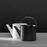 Moderne Teekanne aus Porzellan, mit Filter und Henkel aus Edelstahl