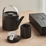 Double-walled anthracite porcelain tea mug with reactive glazing