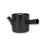 Graue Teekanne aus Porzellan mit integriertem Sieb und Seitengriff