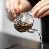 Eine kleine Teekanne aus festem Glas für die Gong-fu Cha Zubereitung